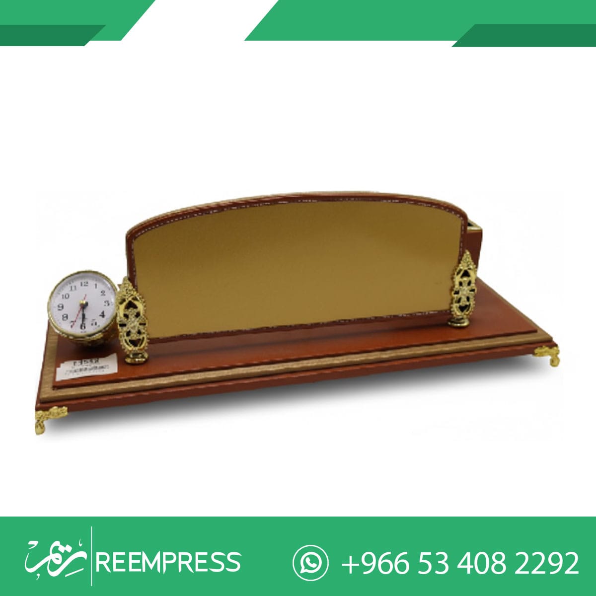 تصميم لوحات اسم للمكتب يجمع بين الكلاسيكية الفاخرة واللمسات العصرية. اكتشف تشكيلتنا المزودة بساعات مكتبية وتفاصيل ذهبية محفورة بدقة. الخيار الأمثل للمدراء.