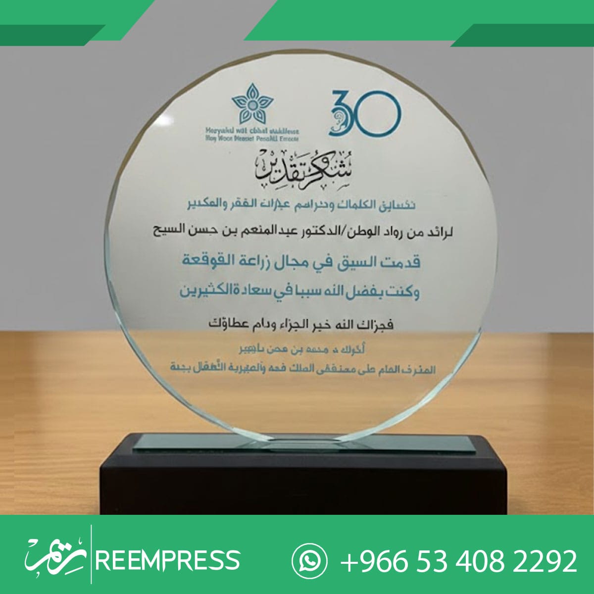 دروع شكر وتقدير فاخرة مصنوعة من أجود أنواع الكريستال والزجاج. صُممت خصيصاً لتخليد لحظات النجاح وتكريم المتميزين بأناقة لا تضاهى.