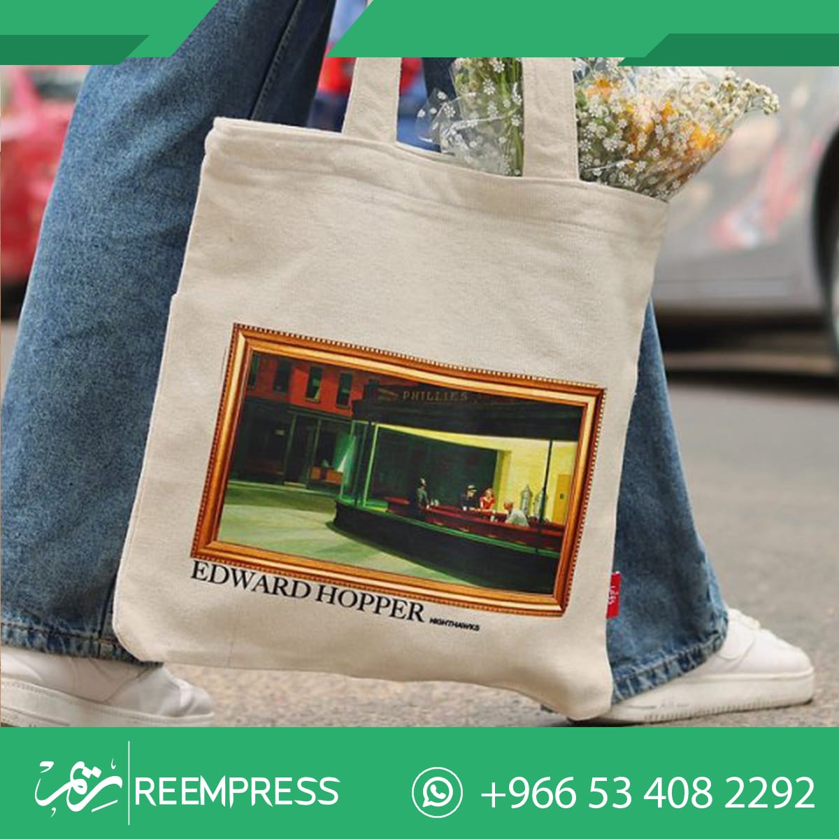 طباعة شنط قماش بتصاميم عصرية تعكس ذوقك الخاص. نستخدم أجود أنواع الأقمشة الصديقة للبيئة مع تقنيات طباعة متطورة تضمن ثبات الألوان وجمال التفاصيل.