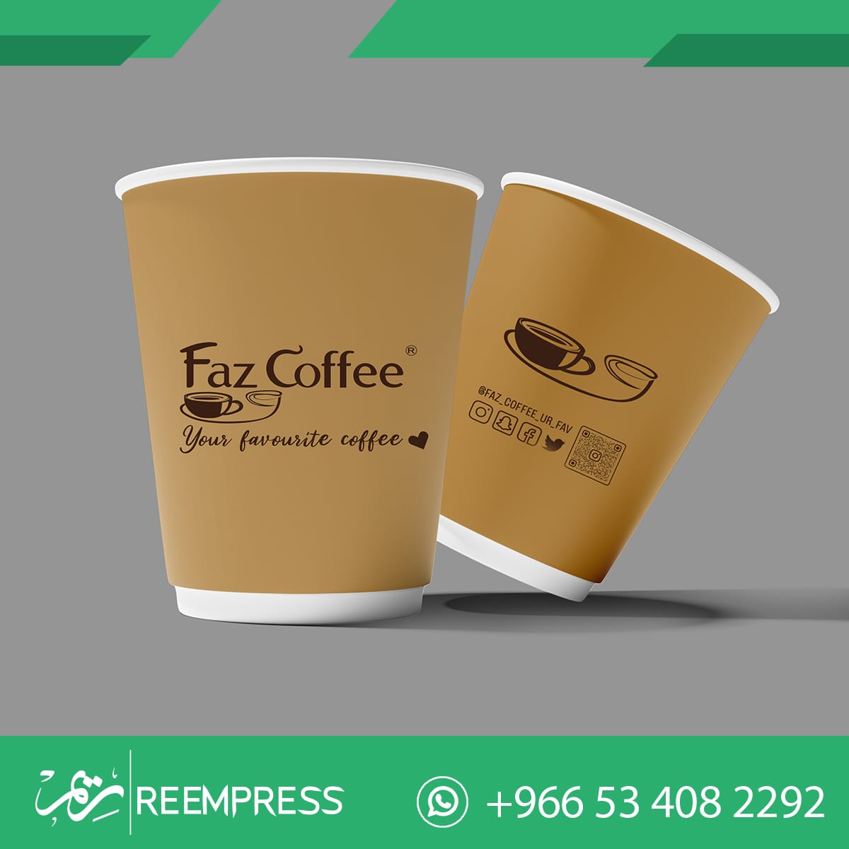 طباعة على اكواب ورق بأعلى جودة لتعزيز هوية مقهاك أو شركتك. نوفر تصاميم إبداعية، ألواناً ثابتة، وأسعاراً تنافسية للكميات. اطلب أكوابك المخصصة الآن !