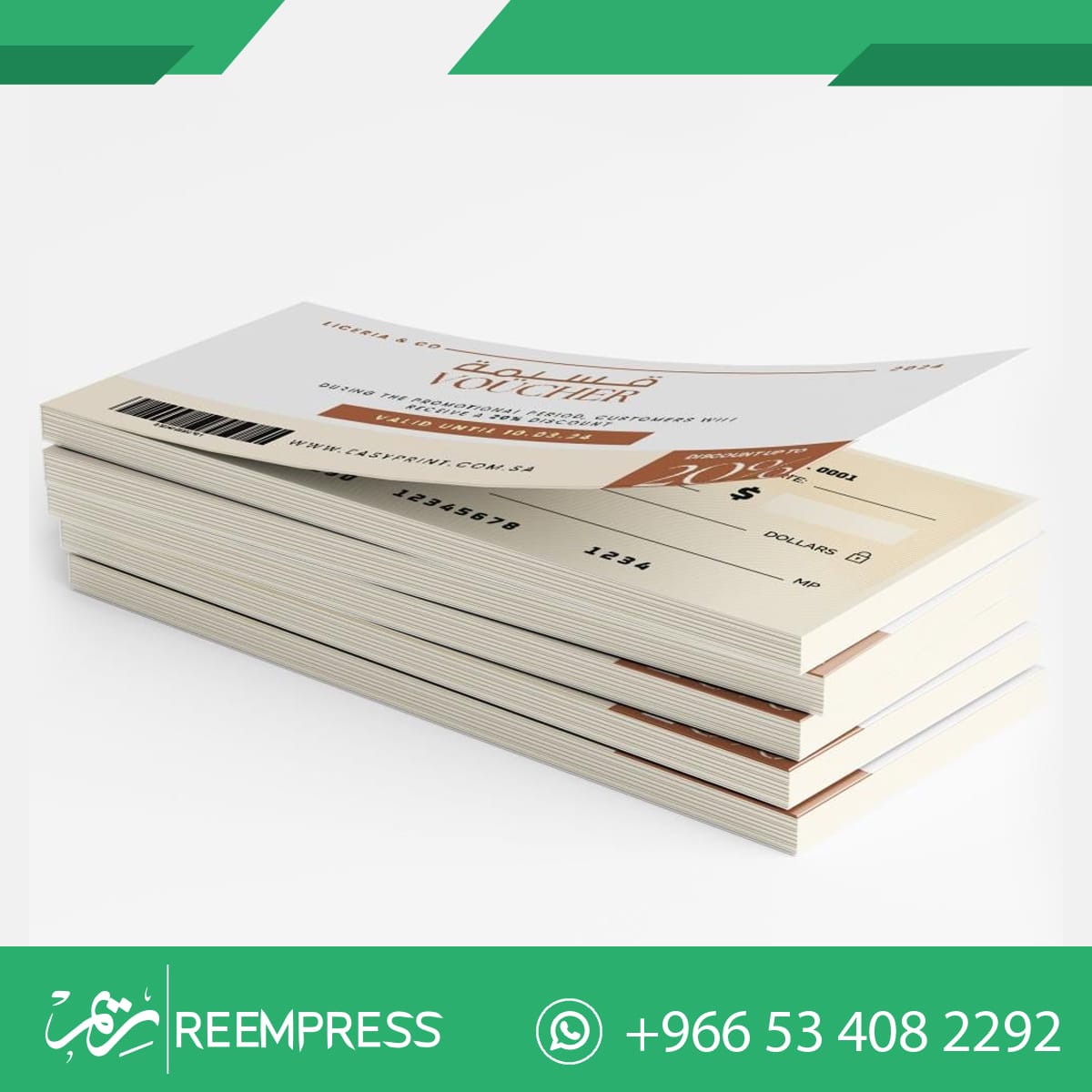 طباعة كوبونات خصم وتذاكر فعاليات بجودة عالية وألوان دقيقة. متوفر بمقاسات متنوعة مع خاصية الترقيم المتسلسل والشرشرة لسهولة الفصل.