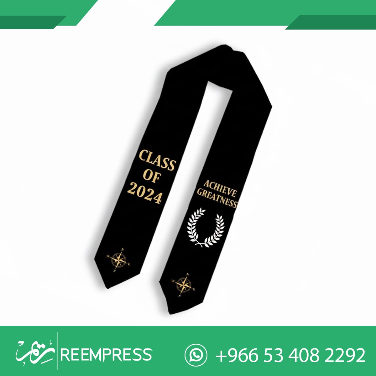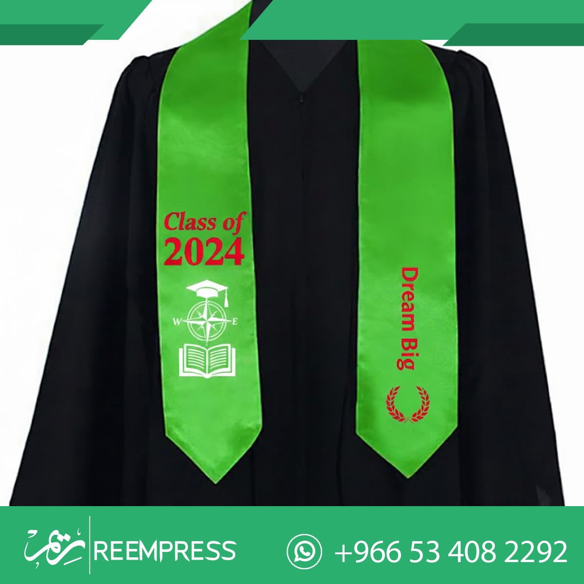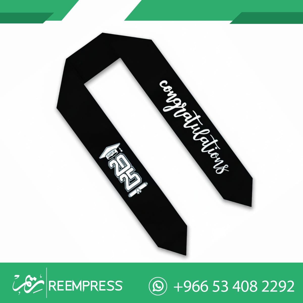 طباعة وشاح فاخر بالاسم والتاريخ ليومك المميز. نستخدم أحدث تقنيات الطباعة لضمان ألوان ثابتة وتفاصيل دقيقة على أرقى الأقمشة. اجعل لحظة تخرجك استثنائية
