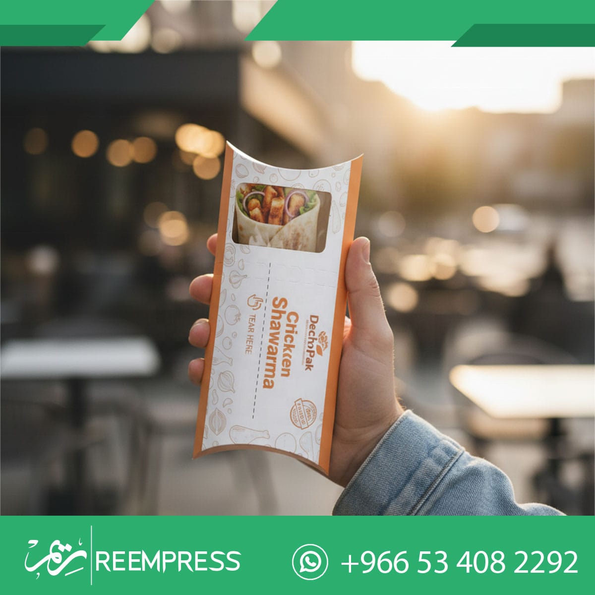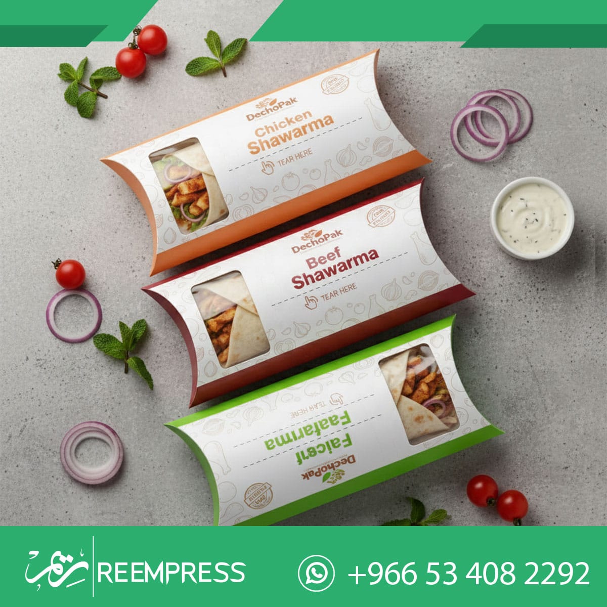 علب شاورما عربي جاهزة مُحكمة الإغلاق. تصميم يحافظ على تتبيلة الشاورما طازجة وجودتها عالية، علبة عملية لوجبات سريعة ومُخطط لها.