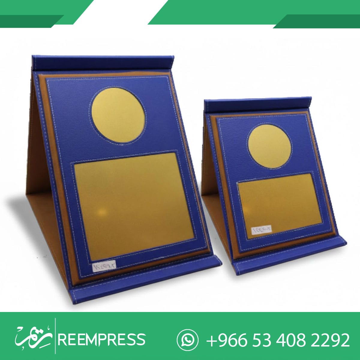 عمل دروع جلدية ملكية ومعدنية بلمسات ذهبية راقية. نضمن لك تصميم احترافي يعكس قيمة التكريم مع توفر أحجام مختلفة تلبي احتياجاتك. اطلب درعك المخصص الآن