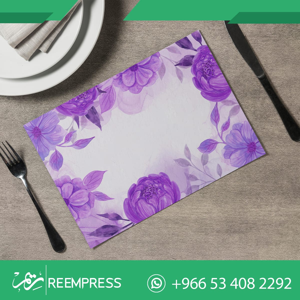 - طباعة ورق طاولات طعام بهوية وحسب طلب العميل بألوان كلملة